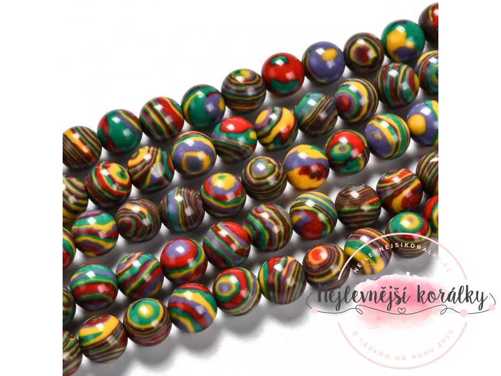 Syntetický malachit - jamajské barvy - ∅ 8 mm - 1 ks