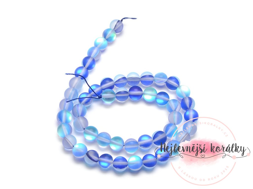 Syntetický měsíční kámen - matný - modrý - ∅ 8 mm - 1 ks