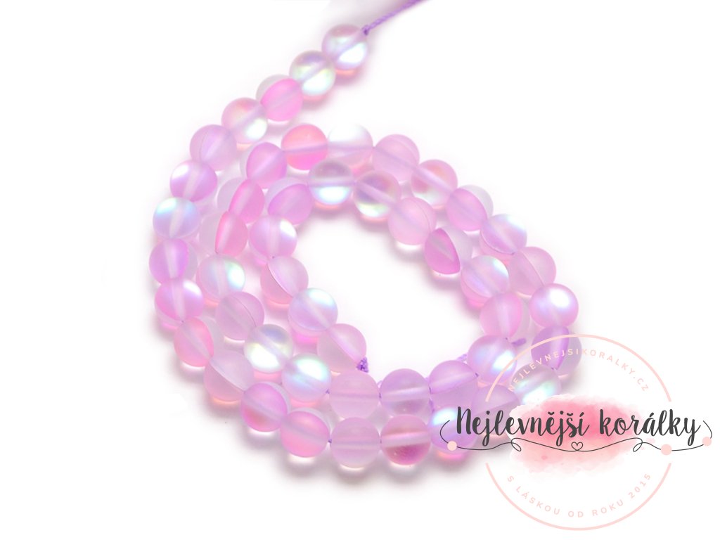 Syntetický měsíční kámen - matný - světle růžovofialový - ∅ 8 mm - 1 ks