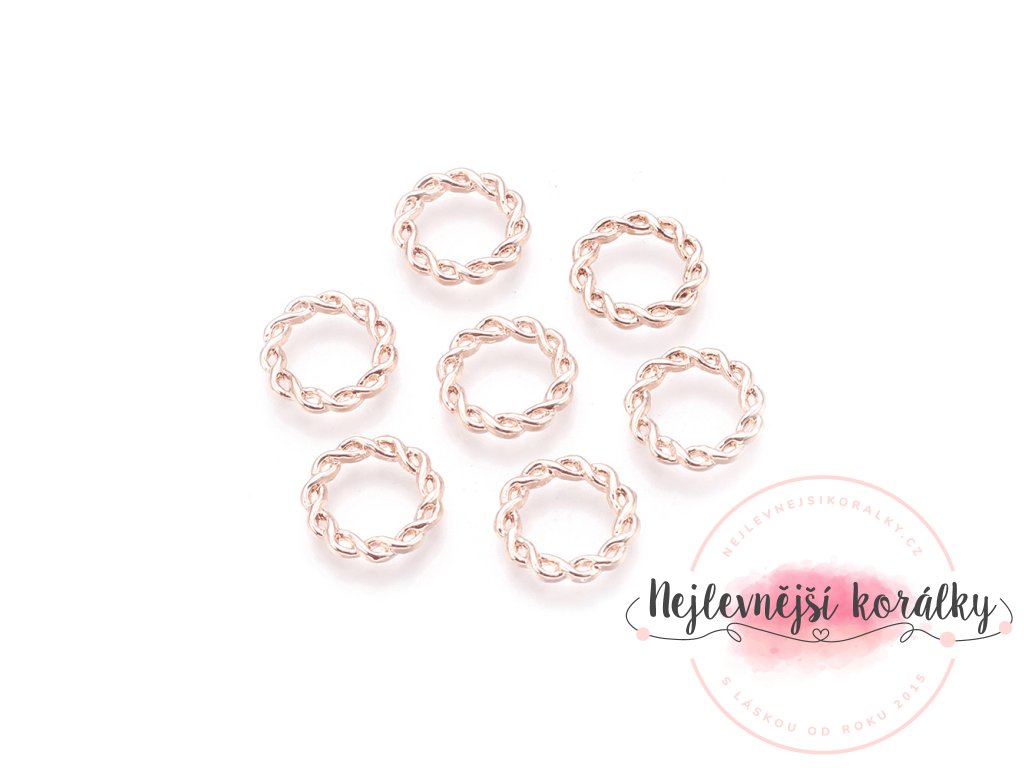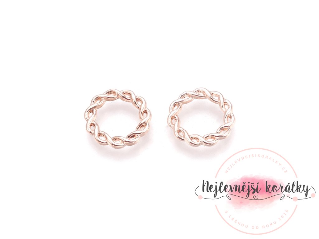 Kovový spojovací mezidíl - růžově zlatý - kruh - 15 x 15 x 2 mm - 1 ks