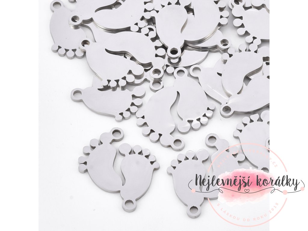 Mezidíl z nerezové oceli - platinový - chodidla - 16 x 19,5 x 1 mm - 1 ks