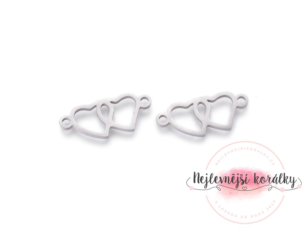 Mezidíl z nerezové oceli - dvojité srdce - platinový - 8 x 20 x 1 mm - 1 ks