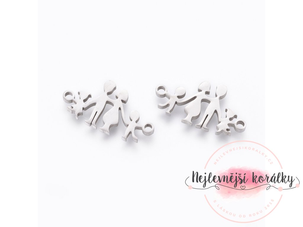 Mezidíl z nerezové oceli - platinový - rodina - 11 x 20 x 1,5 mm - 1 ks