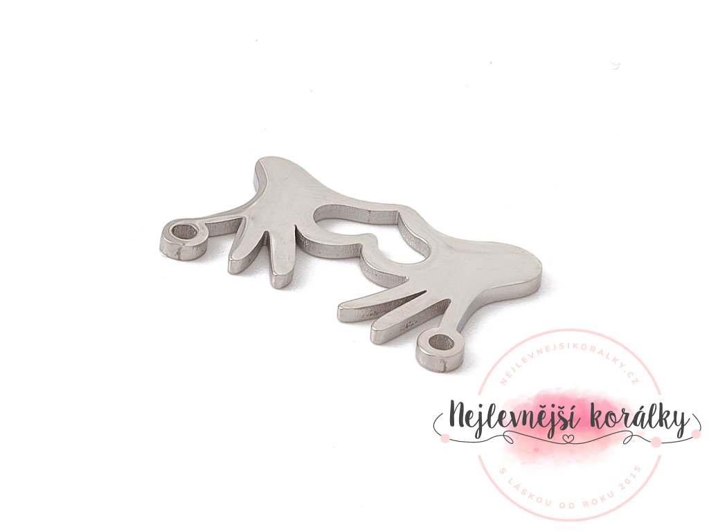Kvalitní mezidíl ve tvaru rukou tvořících prsty srdíčko o výšce 12 mm, šířce 20,5 mm, hloubce 0,8 mm s velikostí průvleku 1,4 mm.