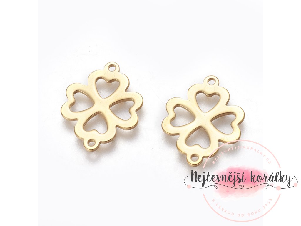 Mezidíl z nerezové oceli - zlatý - čtyřlístek - 21 x 16,5 x 1 mm - 1 ks