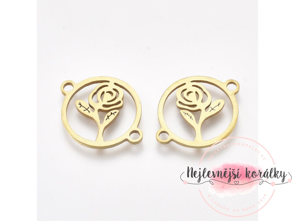 Mezidíl z nerezové oceli - zlatý - květina v kuhu - 19 x 15 x 1 mm - 1 ks