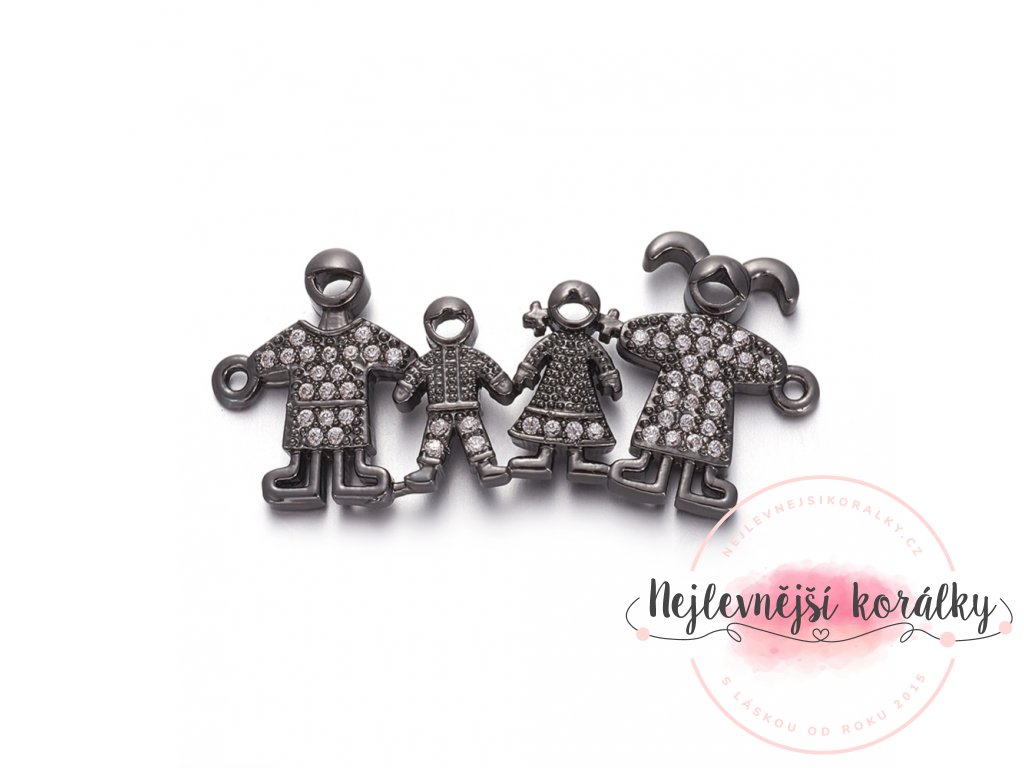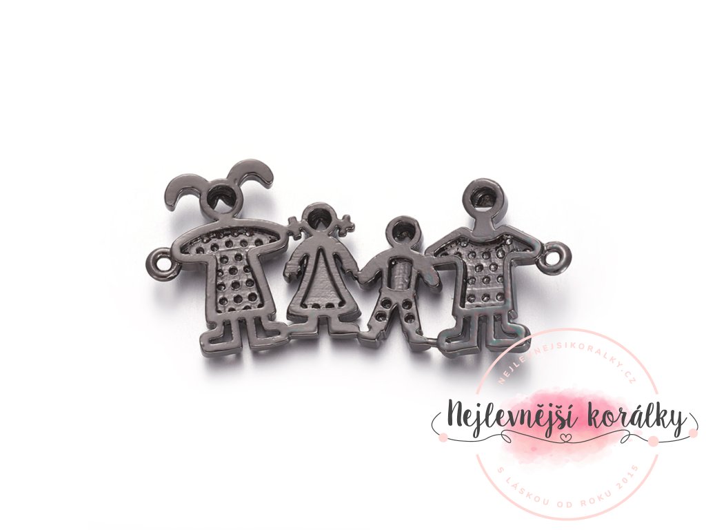Mosazný mezidíl s kubickými zirkony - černý - rodina - 16 x 33,5 x 3 mm - 1 ks