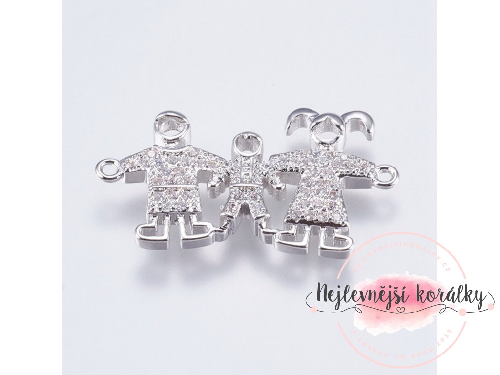 Mosazný mezidíl s kubickými zirkony - platinový - rodina - 15,5 x 26 x 3 mm - 1 ks