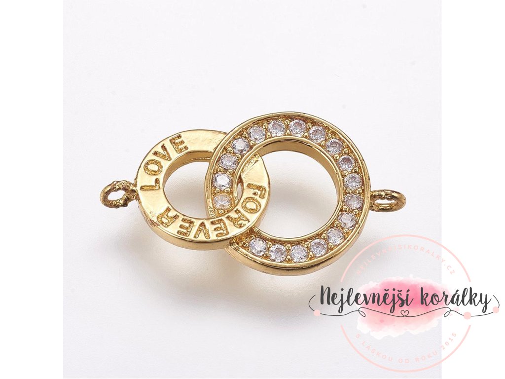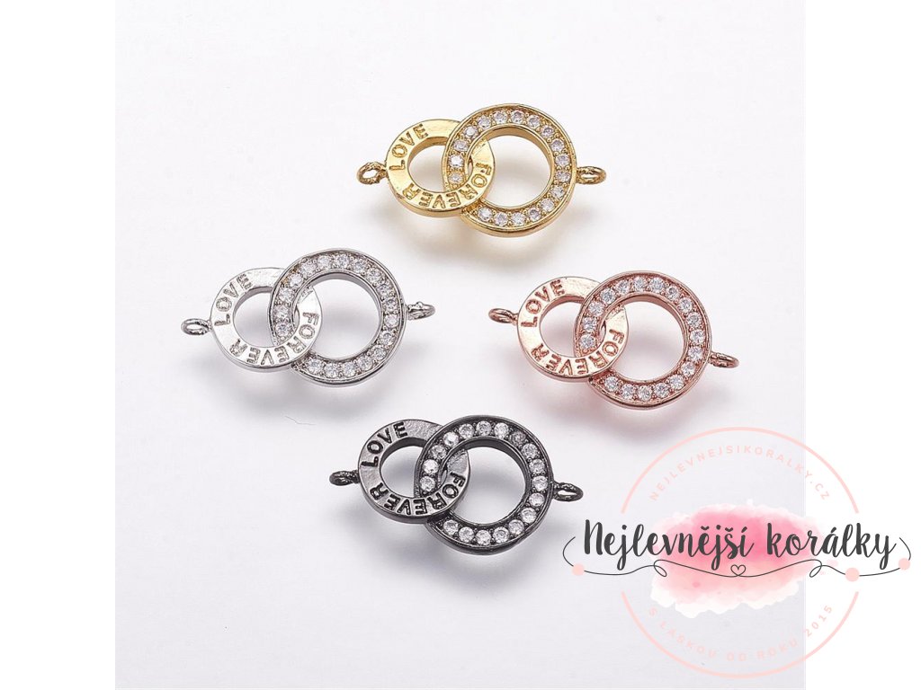 Mosazný mezidíl s kubickými zirkony - různá provedení - love forever - 13 x 24 x 3 mm - 1 ks