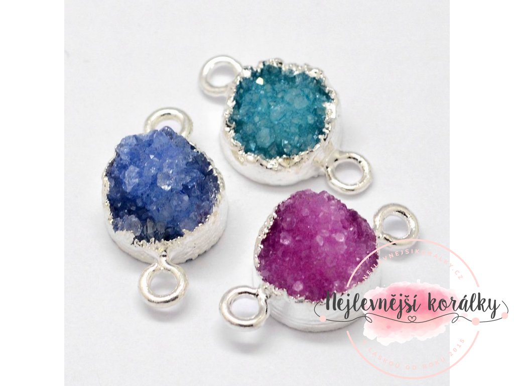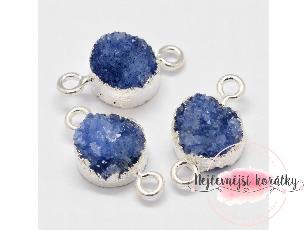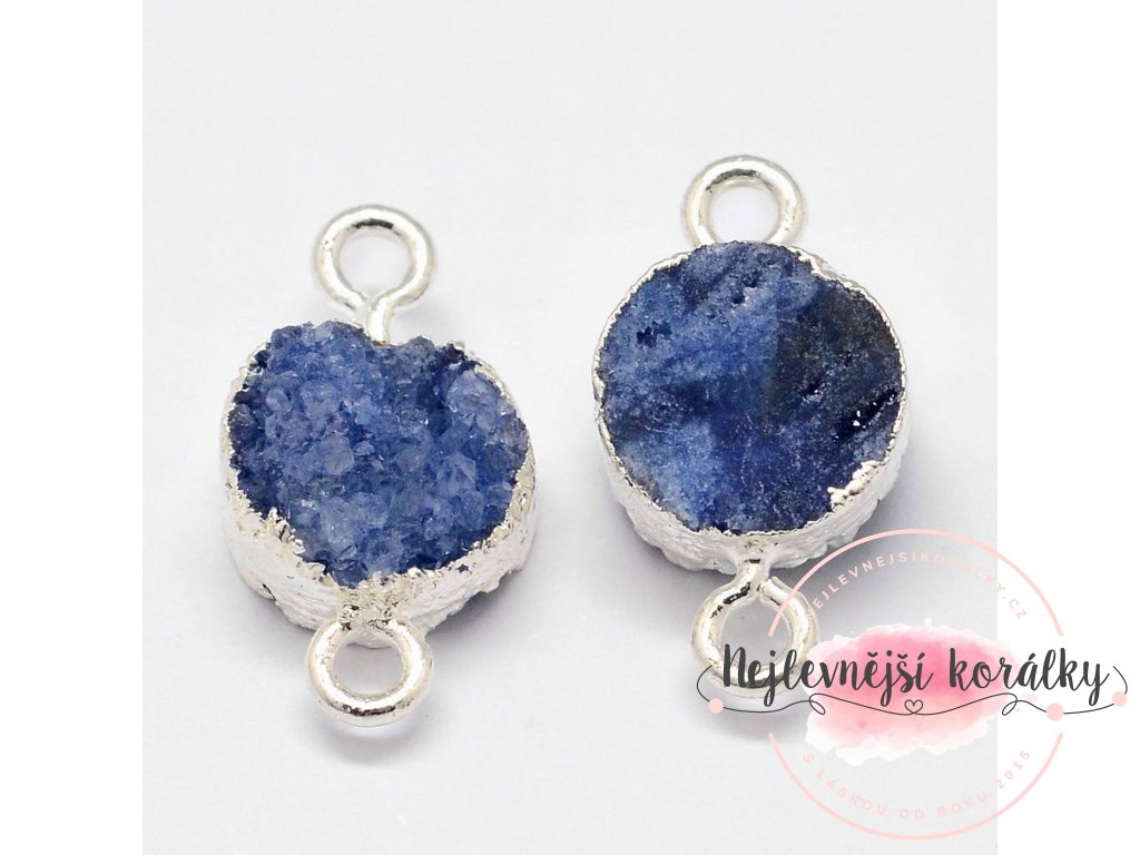 Mosazný mezidíl - stříbrný - kulatá placička - různá provedení - drúza z přírodního achátu - 18 ~ 19 x 10 ~ 10,5 x 6 ~ 7 mm - 1 ks
