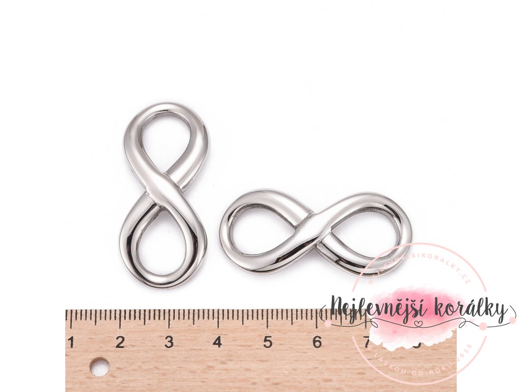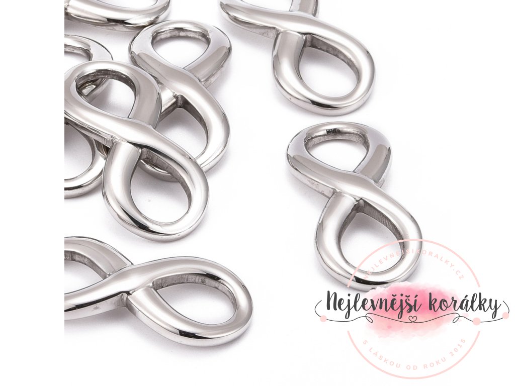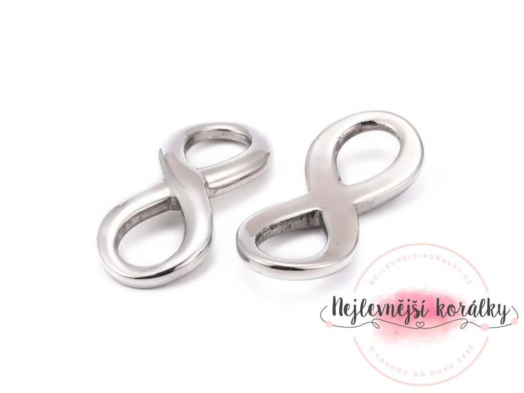 Spojovací mezidíl z nerezové oceli - velký - nekonečno - platinový - 39 x 17 x 3 mm - 1 ks