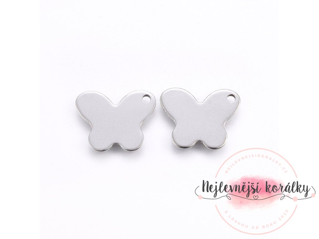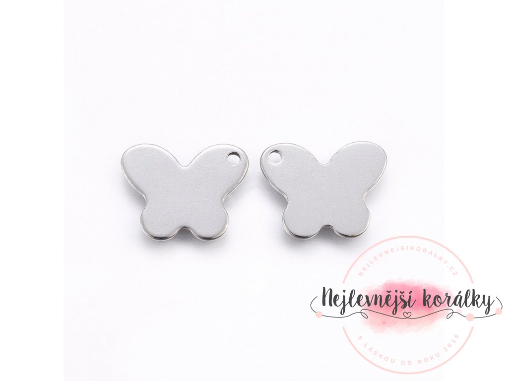 Přívěsek z nerezové oceli pro gravírování - platinový - motýl - 12 x 15 x 0,8 mm - 1 ks