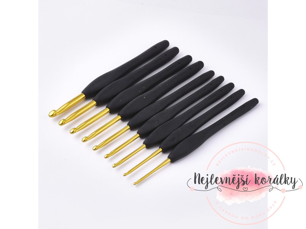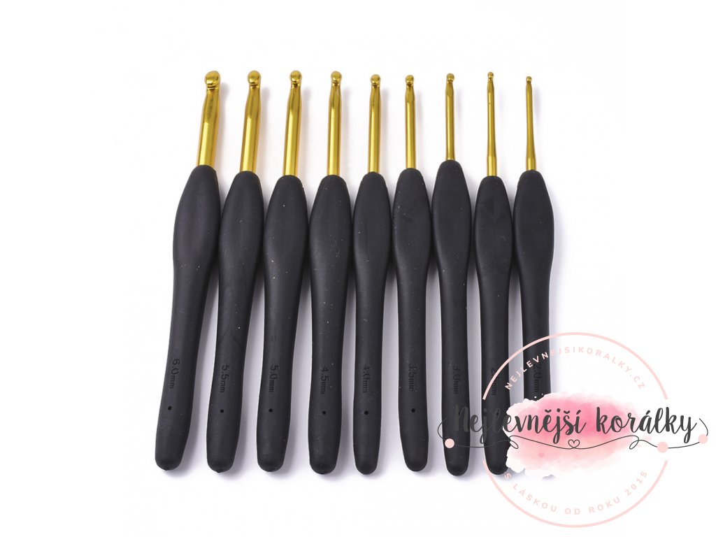 Sada obsahuje háčky 2mm, 2,5mm, 3mm, 3,5mm, 4mm, 4,5mm, 5mm, 5,5mm a 6mm.