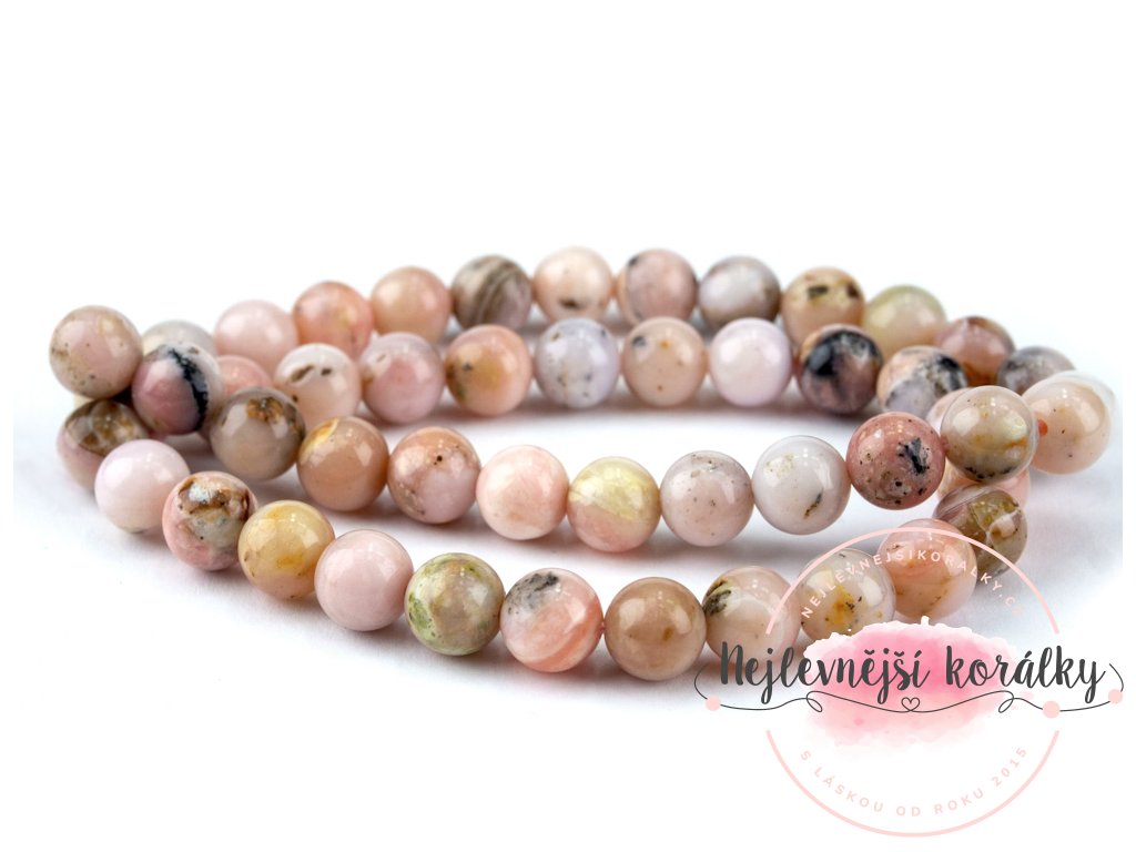 Přírodní korálky z minerálu růžový opál v pěkné třídě AB.