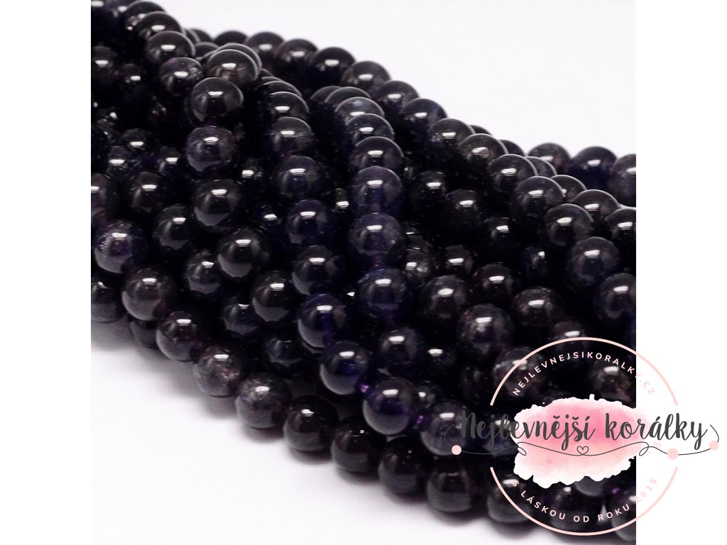 Luxusní kordieritové korálky průměru 8mm s velikostí průvleku 1mm.