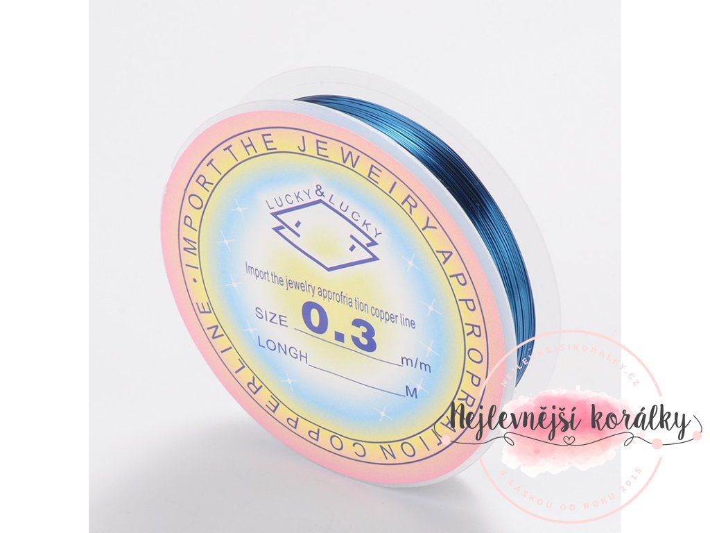 Měděný modelovací drát v petrolejově modrém provedení o šíři drátu 0,3 mm a délce 20 m.