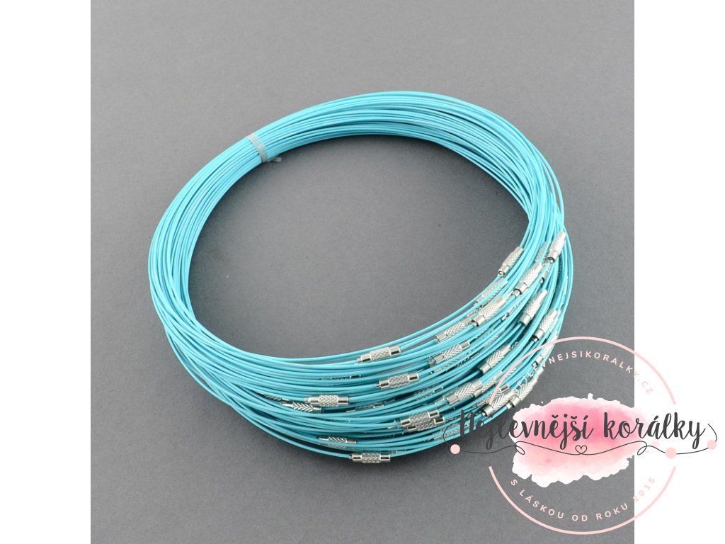 Nerezový náhrdelník – polotovar pro výrobu šperků, s mosazným šroubovacím zapínáním, tyrkysový