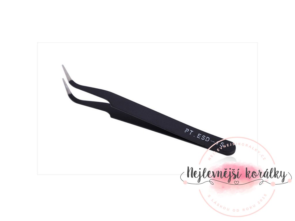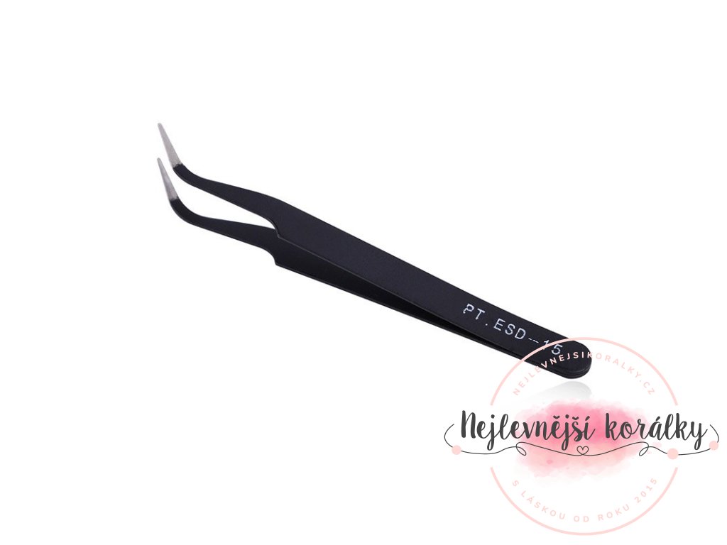 Antistatická pinzeta z nerezové oceli - zahnutá - černá - 11,6 cm - 1 ks