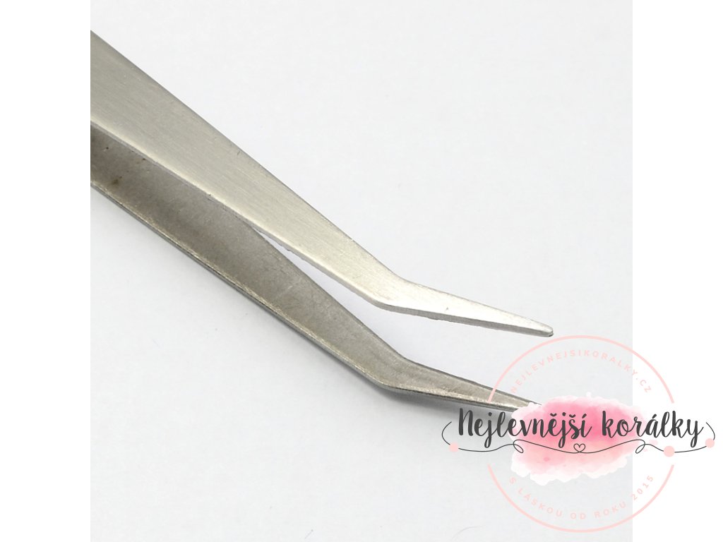 Pinzeta má zahnutou špičku a ploché zakončení, vysoce odolná špička se ani po delším používání neohýbá.