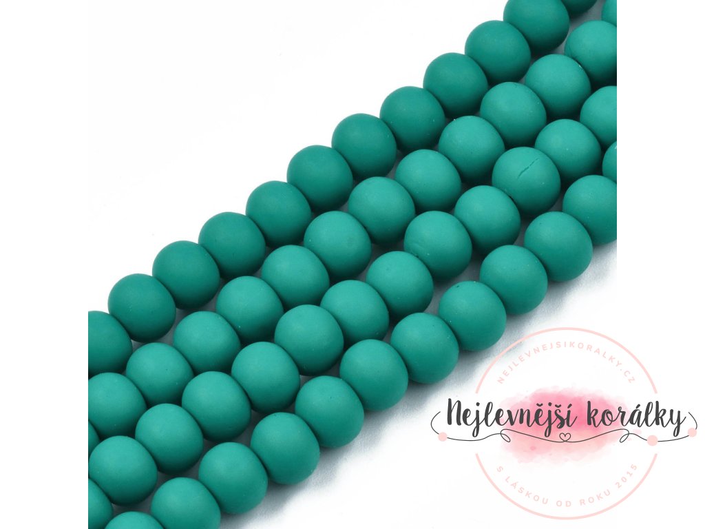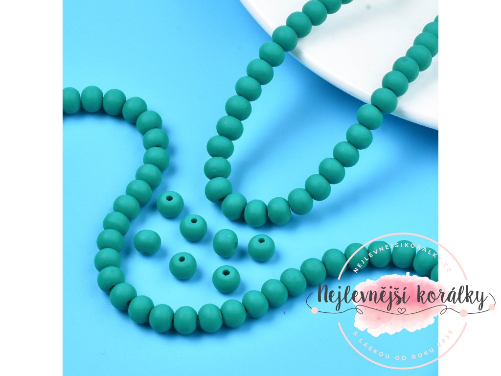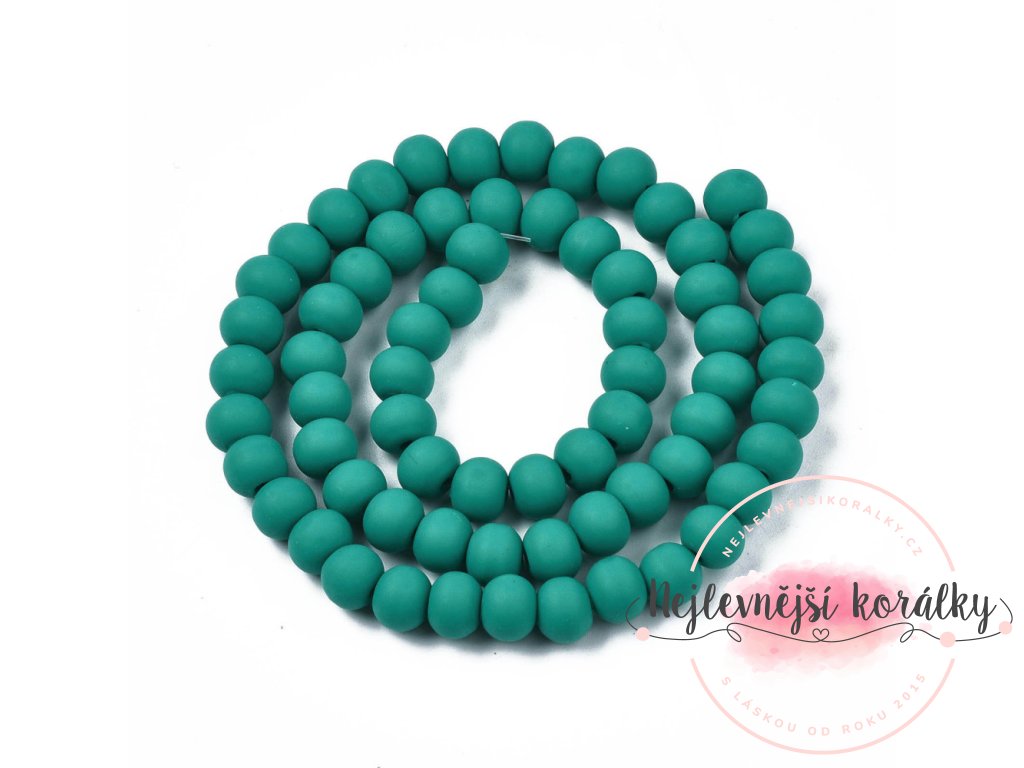 Korálky vyrobené z polymeru o velikosti 7 mm x 5,5 mm ve smaragdově zelené barvě. Dírka pro průvlek je cca 1,6 mm velká, takže se velmi snadno navlékají.
