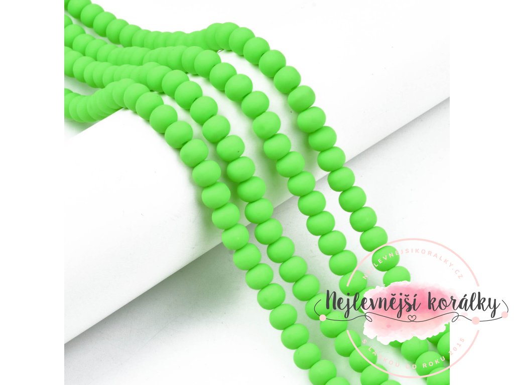 Korálky vyrobené z polymeru o velikosti 7 mm x 5,5 mm v zelené barvě. Dírka pro průvlek je cca 1,6 mm velká, takže se velmi snadno navlékají.