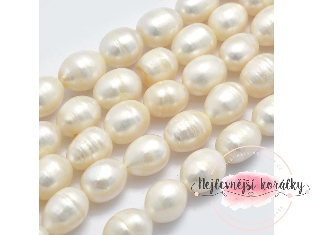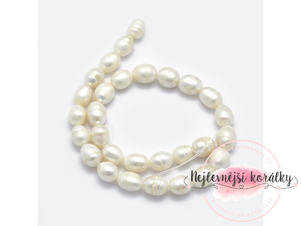 Přírodní sladkovodní perla - bílá - třída AA - 10~12 x 8~10 mm - 1 ks