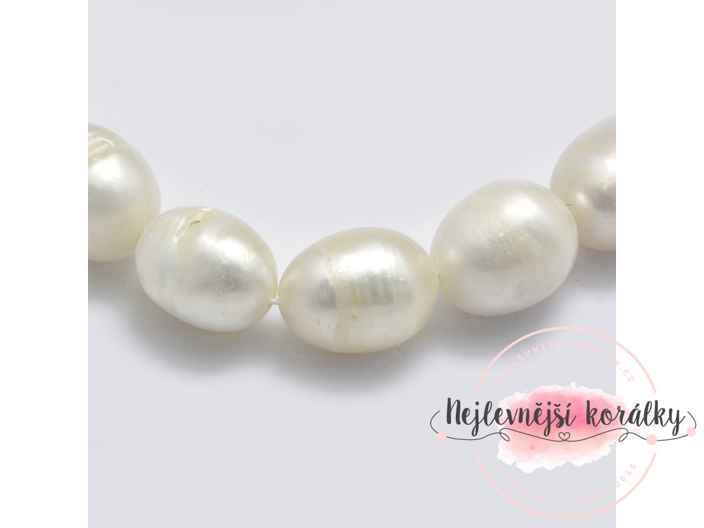 Exkluzivní velké přírodní sladkovodní perla třídy AA o velikosti cca 10 - 12 mm x 8 - 10 mm s velikostí průvleku 0,8 mm.