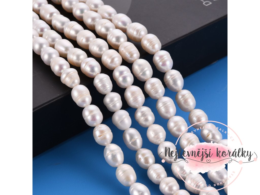 Přírodní sladkovodní perla - bílá - třída AA - 8~10 x 7~8 mm - 1 ks