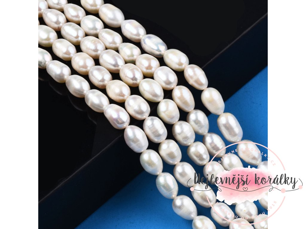 Přírodní sladkovodní perla - bílá - třída AA - 8~9 x 6~7 mm - 1 ks