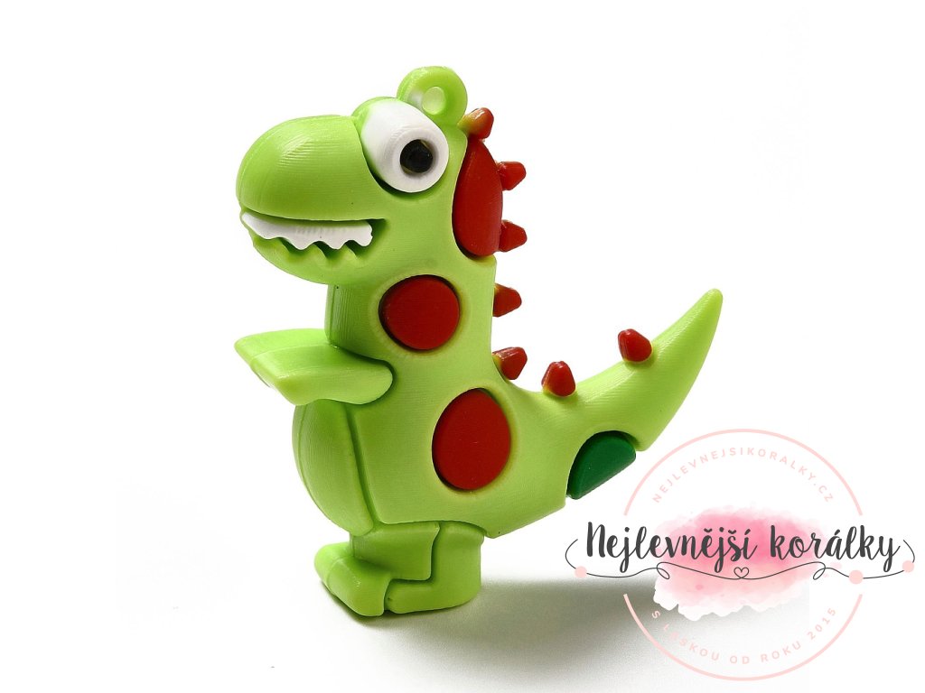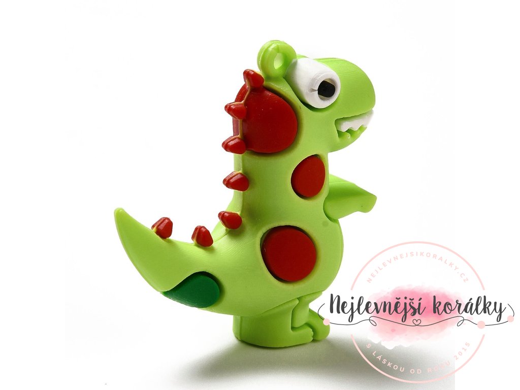 Přívěsek z měkkého plastu ve tvaru dinosaura o výrazné velikosti 52 x 51 x 20 mm s velikostí průvleku 3 mm.