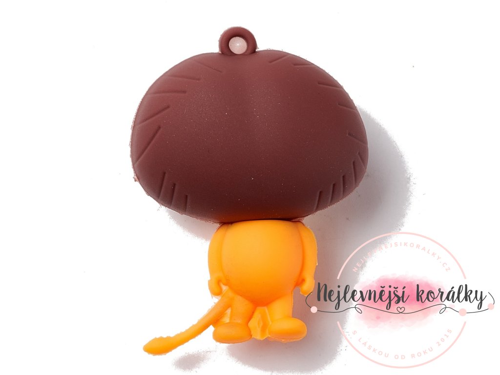 Přívěsek je zhotoven v zářivém oranžovo-hnědém provedení s bílými, žlutými a černými detaily, které dodávají na jeho jedinečnosti a veselosti. Vyrobený z barevného a ohebného plastu, je příjemný na dotek a odolný.
