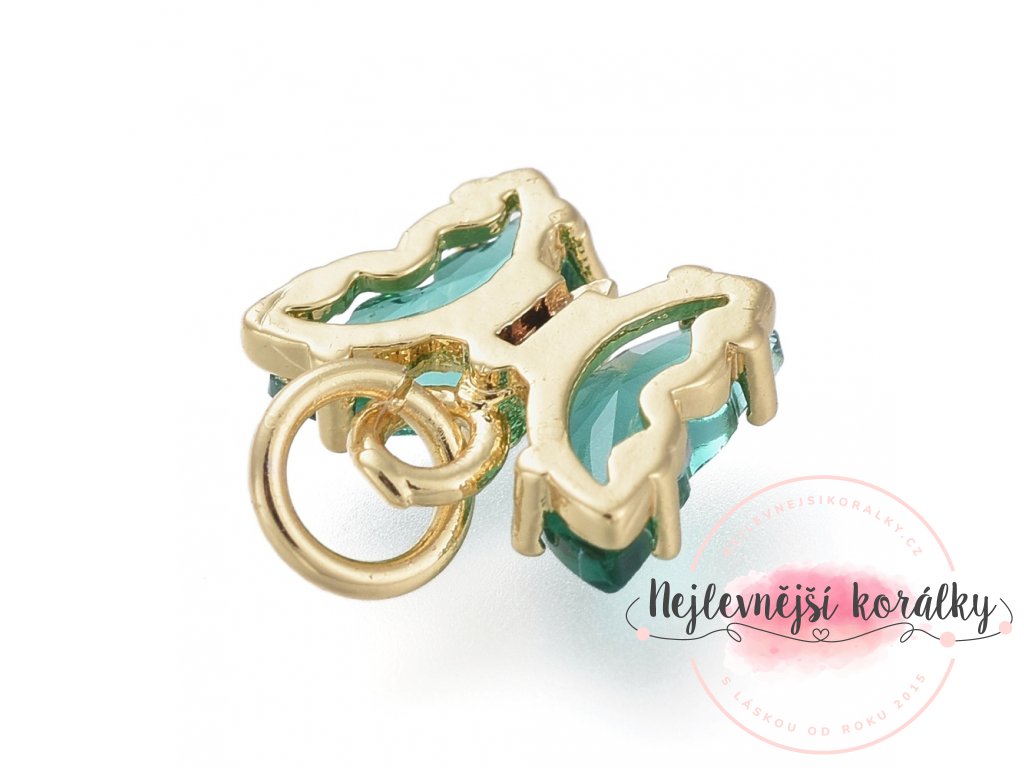 Mosazný přívěsek s kubickými zirkony - motýl - různá provedení - 12,5 x 11 x 3 mm - 1 ks