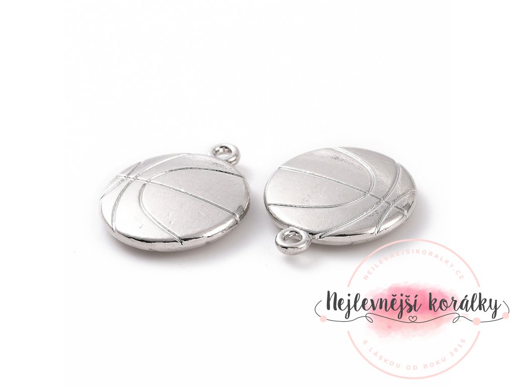 Kovový přívěsek - basketbalový míč - platinový - 22 x 18 x 3 mm - 1 ks