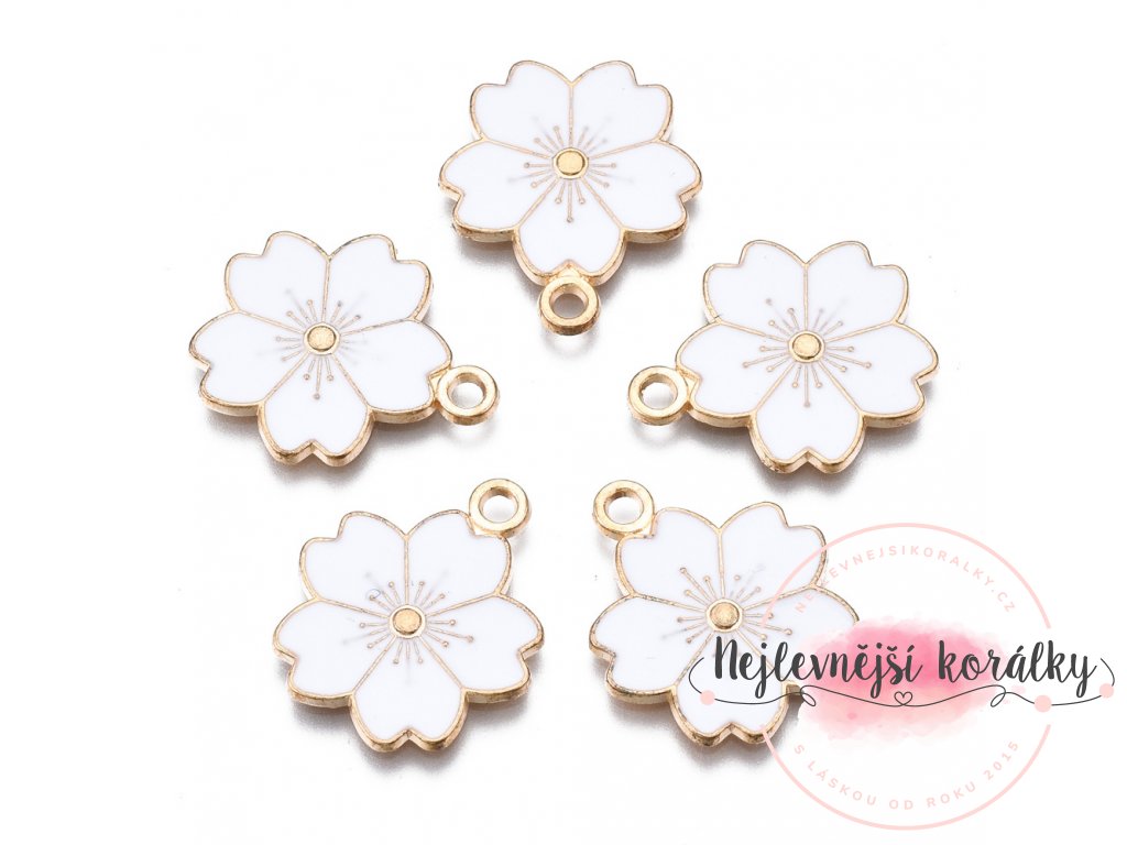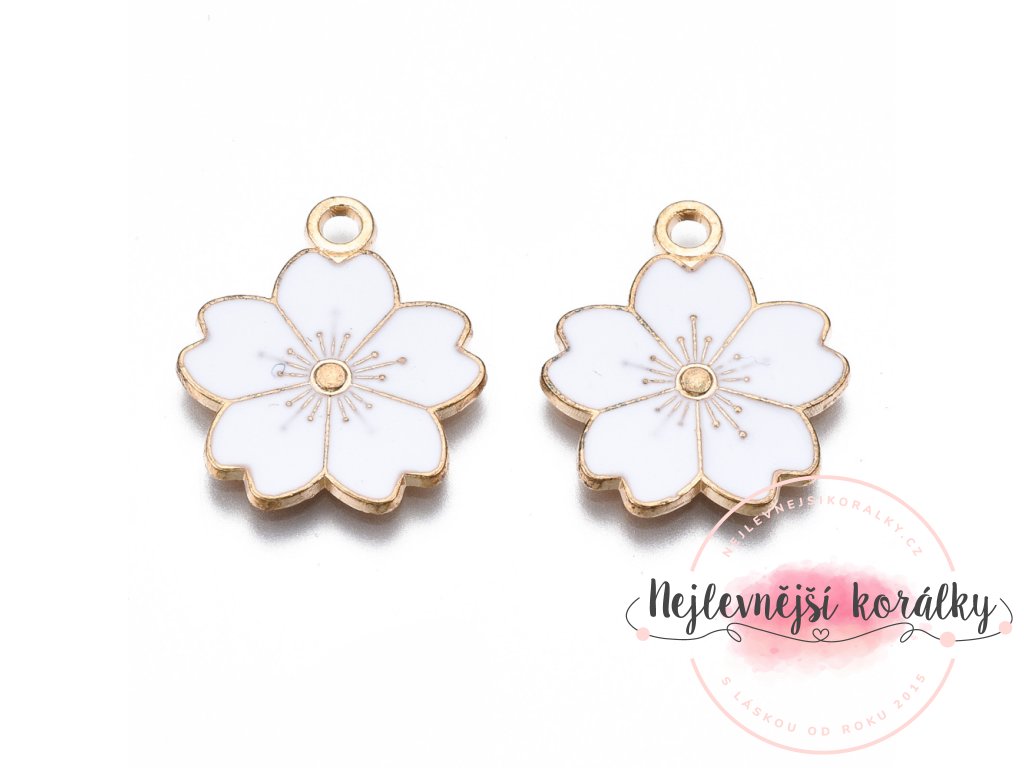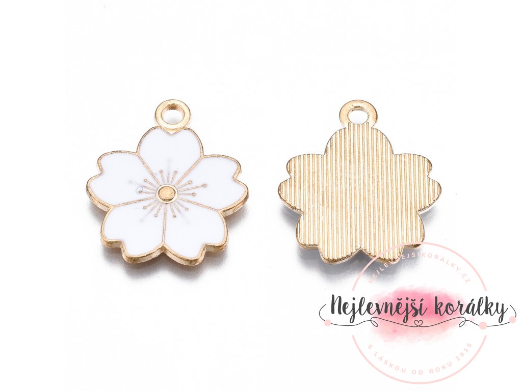 Kovový přívěsek - květ sakury - bílý - 20,5 x 17,5 x 1,5 mm - 1 ks