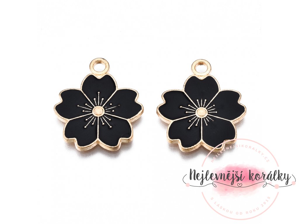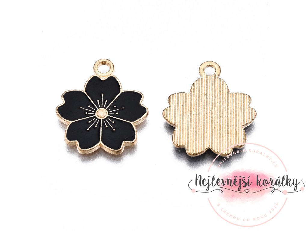 Kovový přívěsek - květ sakury - černý - 20,5 x 17,5 x 1,5 mm - 1 ks