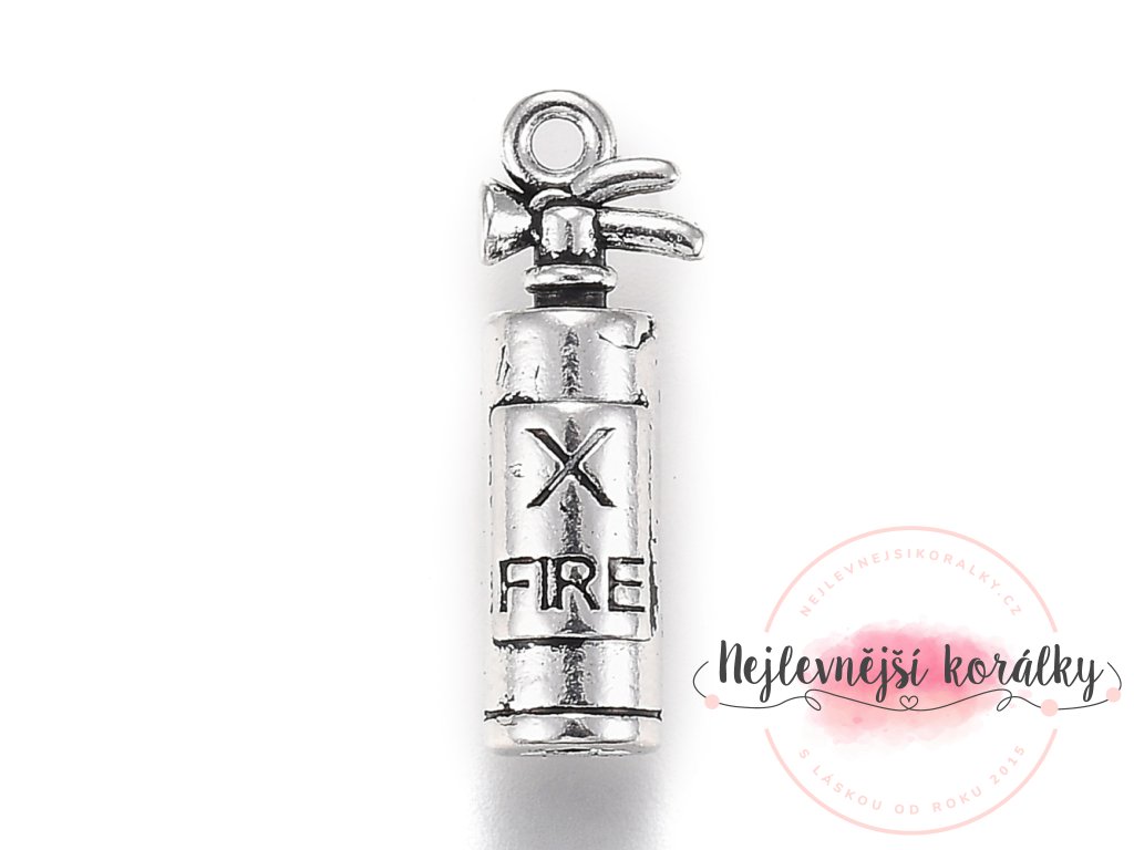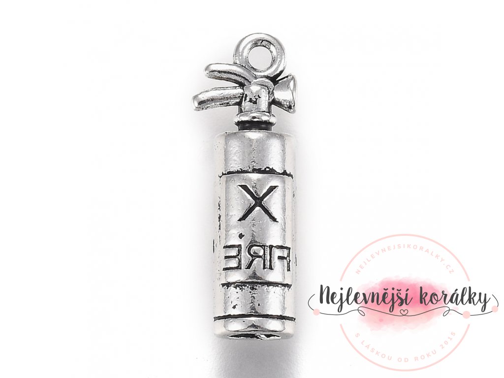 Kovový přívěsek - hasicí přístroj - starostříbrný - 23 x 7 x 6 mm - 1 ks