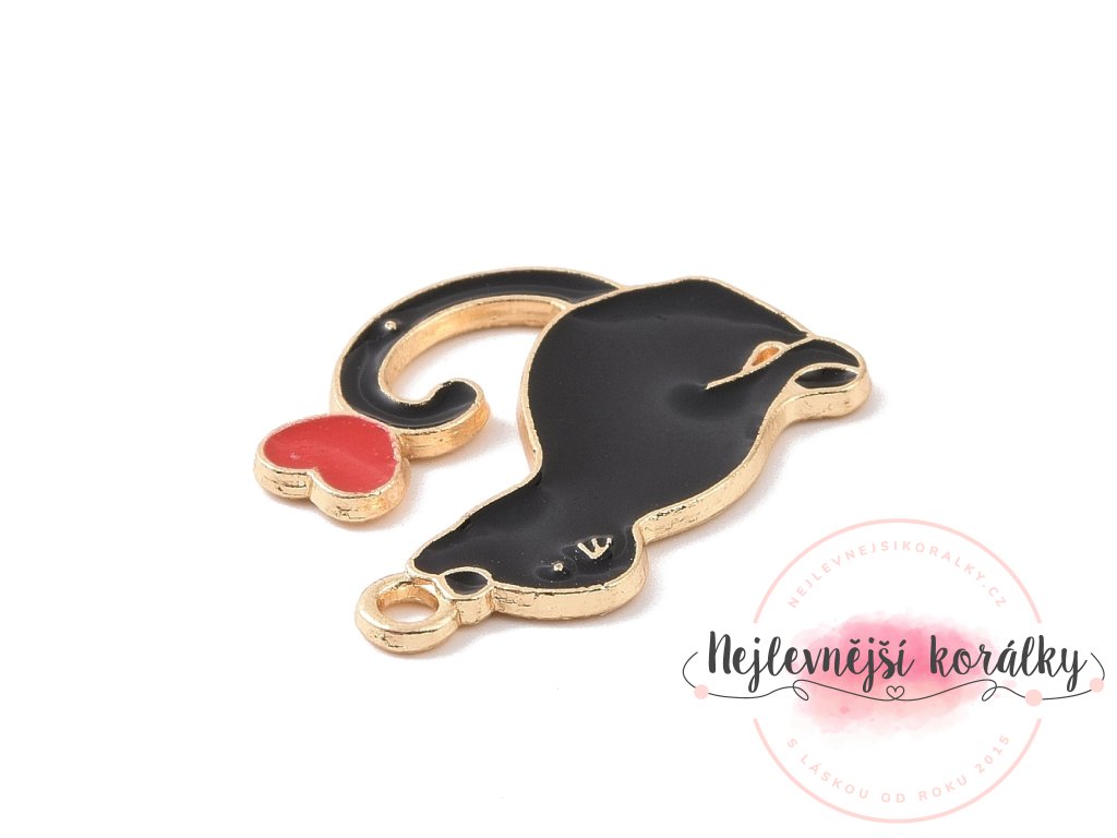 Smaltovaný přívěsek ve tvaru koťátka se srdíčkem je kouzelným motivem, který spojuje něžnost, hravost i symbol lásky. Černé provedení působí elegantně a zároveň výrazně, takže přívěsek krásně vynikne jako dominantní prvek šperku.