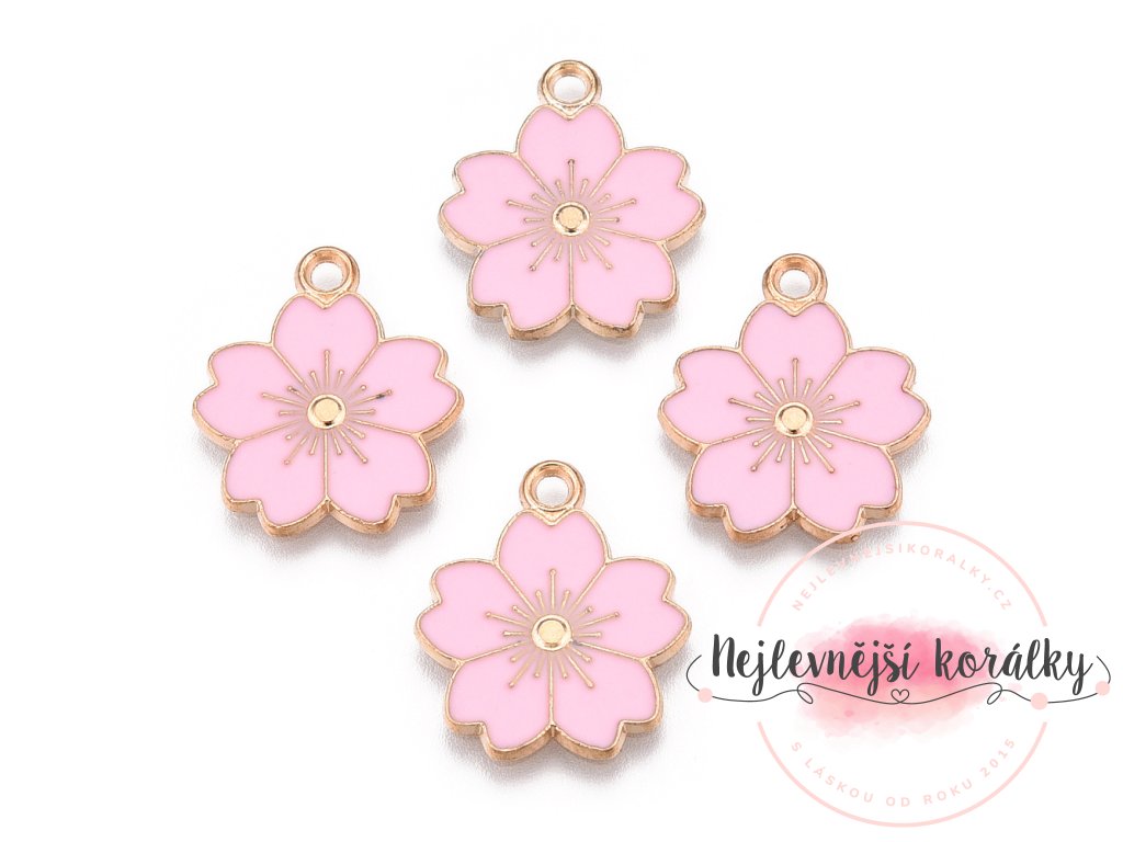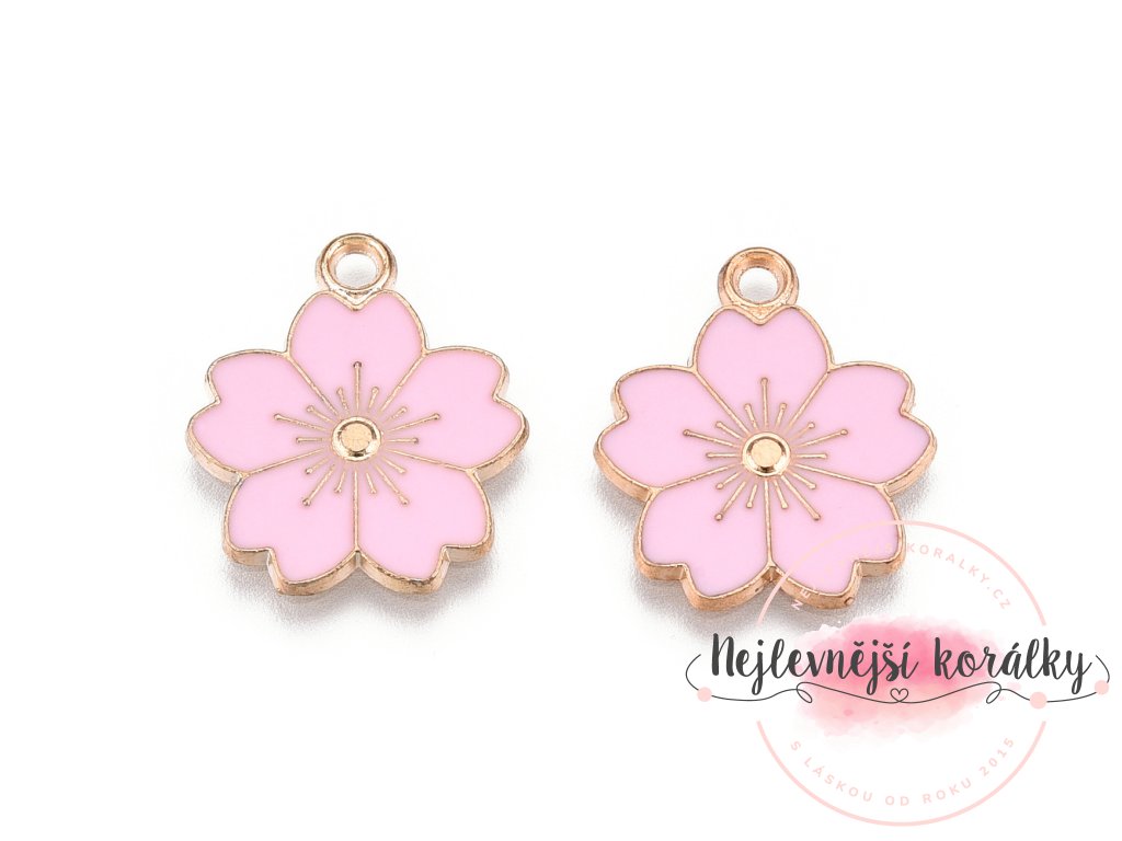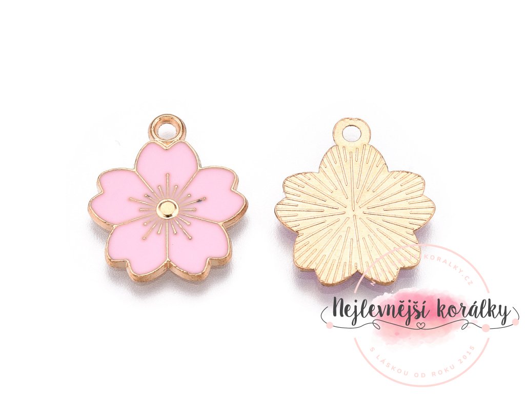 Kovový přívěsek - květ sakury - světle růžový - 20,5 x 17,5 x 1,5 mm - 1 ks