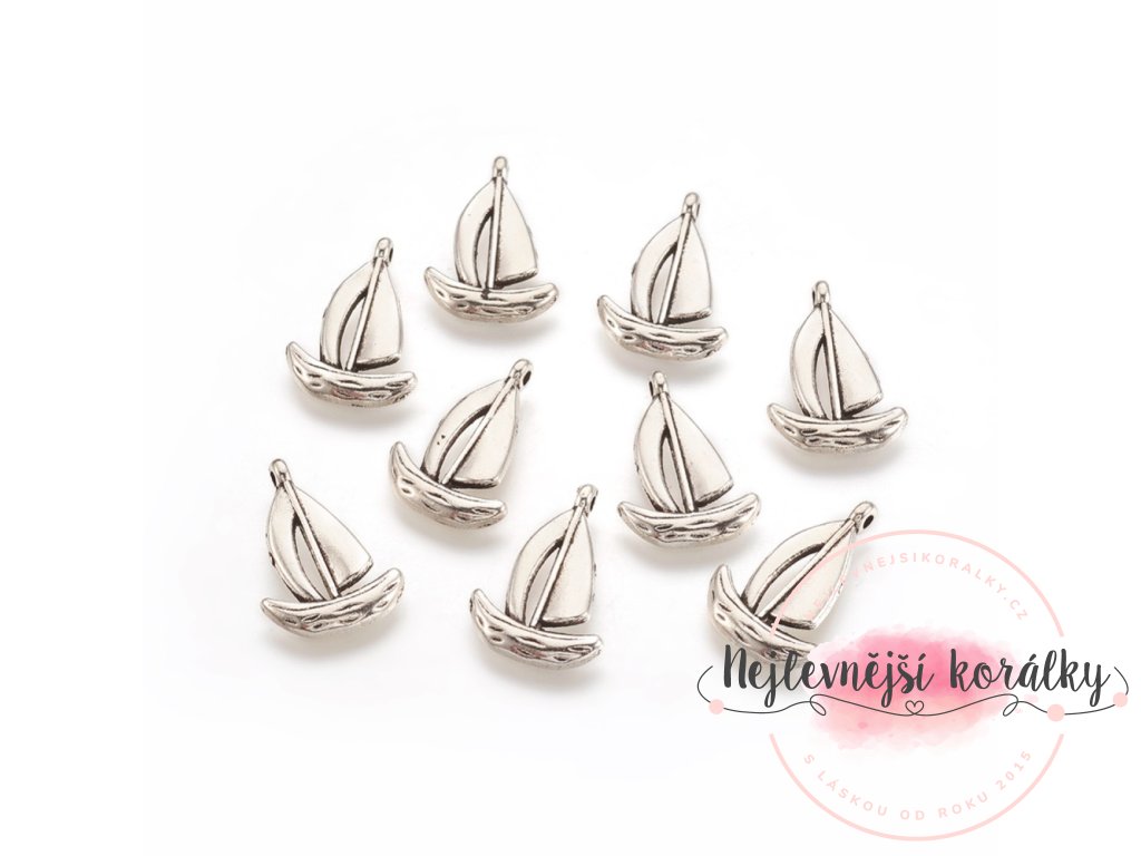 Kovový přívěsek- loď - starostříbrný - 19 x 13 x 1 mm - 1 ks