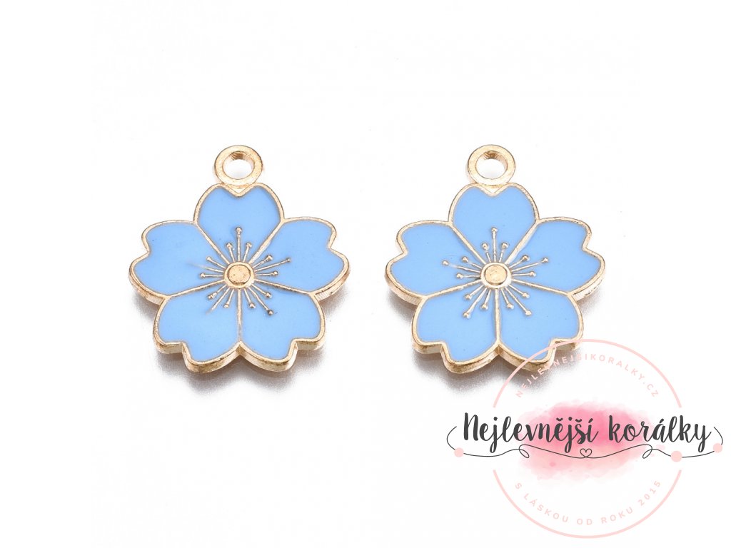 Kovový přívěsek - květ sakury - modrý - 20.5 x 17.5 x 1.5 mm - 1 ks