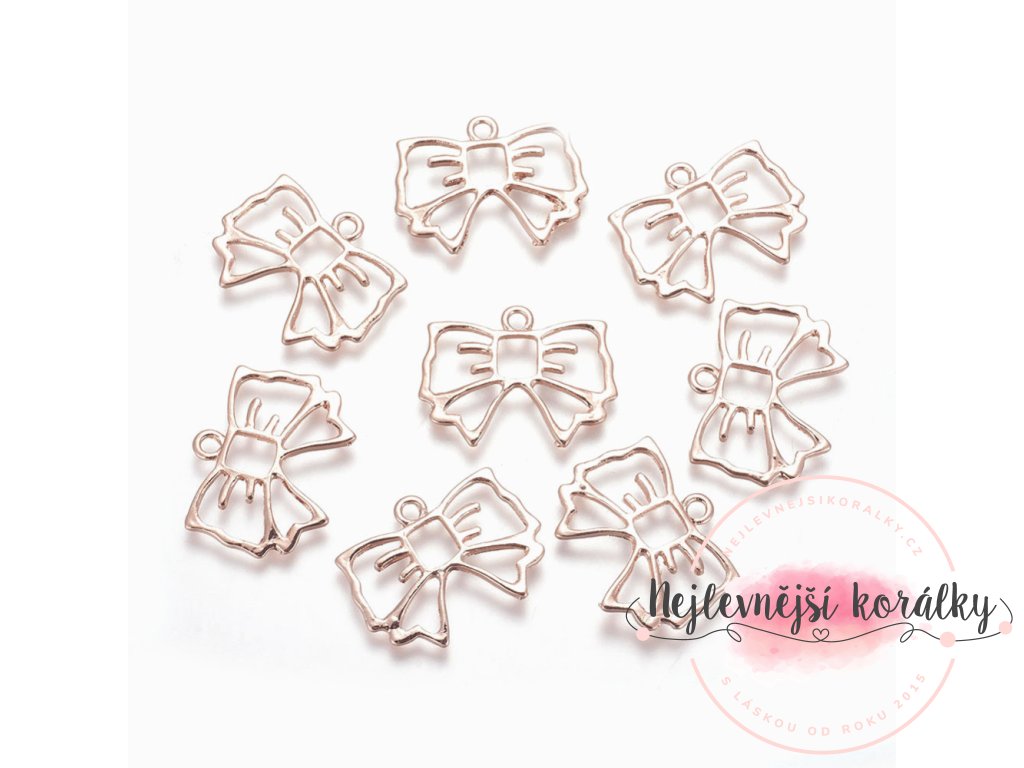 Kovový přívěsek - růžově zlatý - mašle - 19 x 24 x 1,5 mm - 1 ks