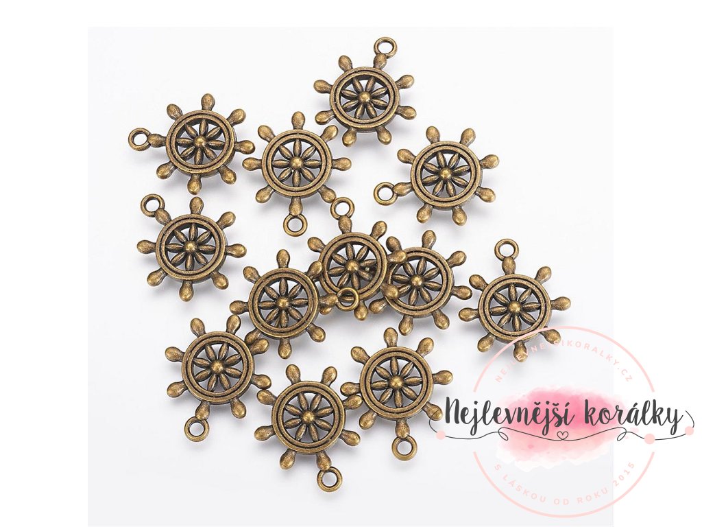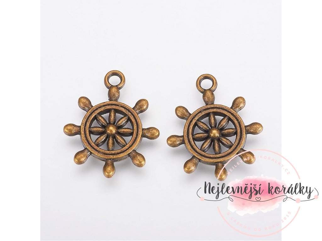 Kovový přívěsek - starobronzový - kormidlo - 23 x 19 x 3,5 mm - 1 ks