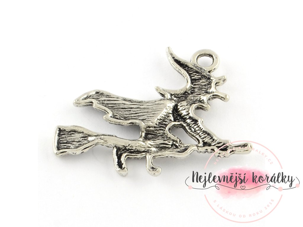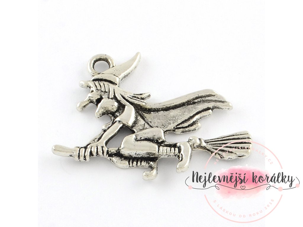 Kovový přívěsek - starostříbrný - čarodějnice - 29,5 x 37 x 3,5 mm - 1 ks