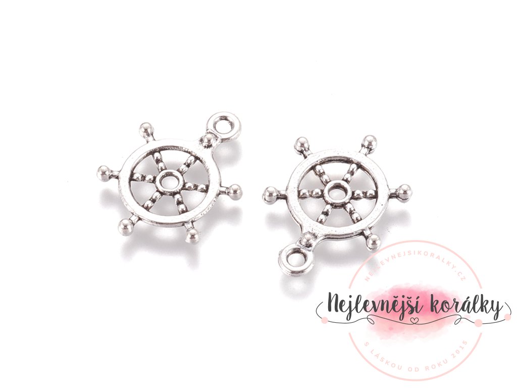 Kovový přívěsek - starostříbrný - kormidlo - 23 x 19 x 3,5 mm - 1 ks