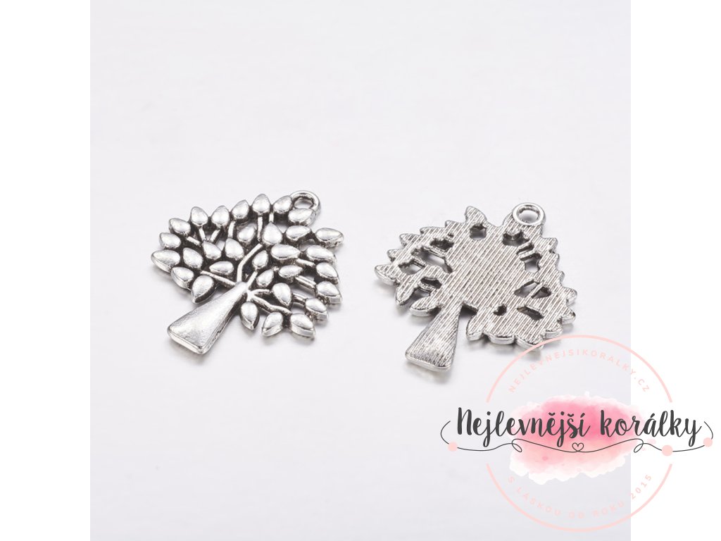 Kovový přívěsek - starostříbrný - strom života - 28 x 24 x 1,5 mm - 1 ks