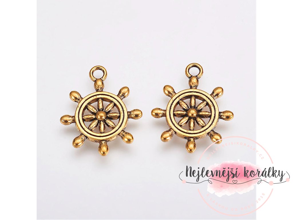 Kovový přívěsek - starozlatý - kormidlo - 23 x 19 x 3,5 mm - 1 ks