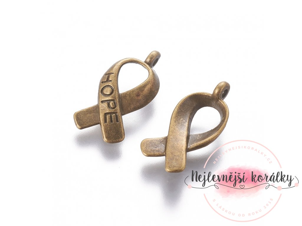 Kovový přívěsek - stužka s nápisem "HOPE" - starobronzová - 17 x 8 x 3 mm - 1 ks
