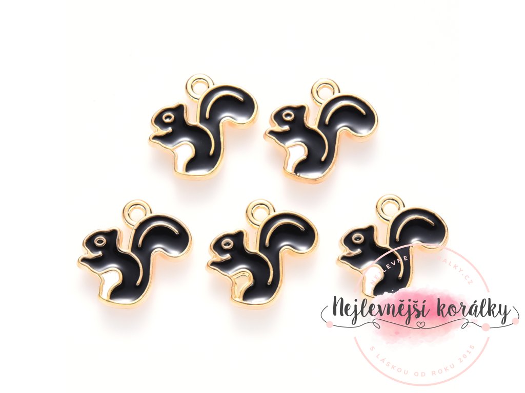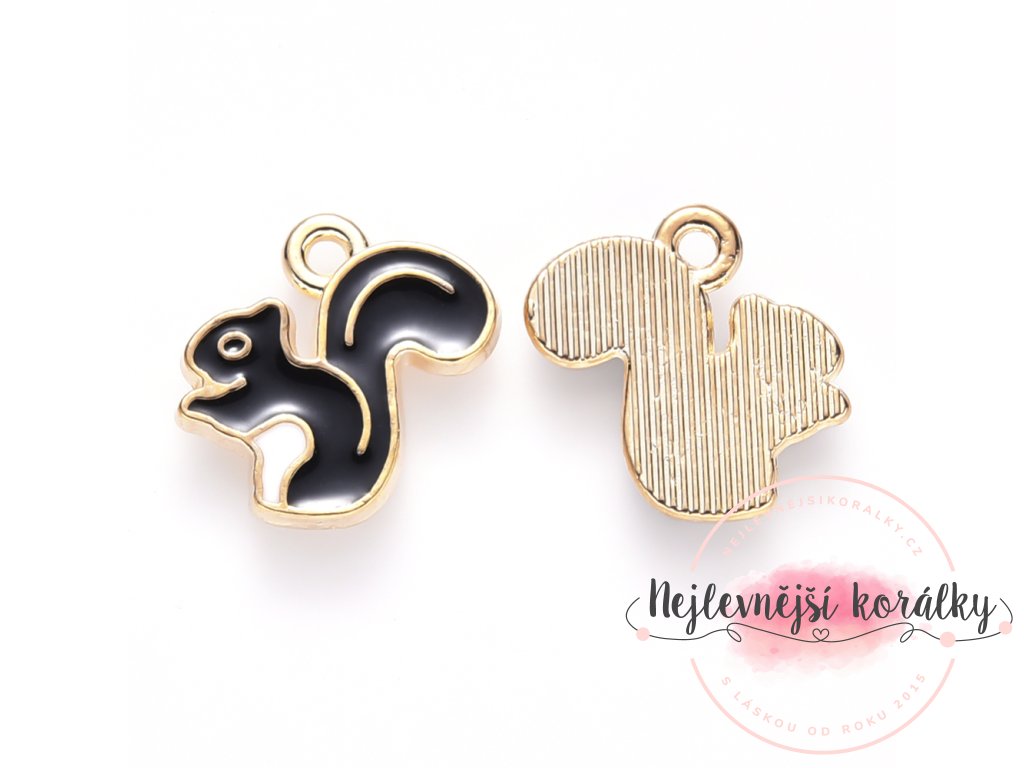 Smaltovaný přívěsek ve tvaru veverky je kouzelným podzimním motivem, který vnese do vašich šperků hravost i nádech přírody. Kombinace světle zlatého kovu a černého smaltu působí elegantně, ale zároveň velmi výrazně.