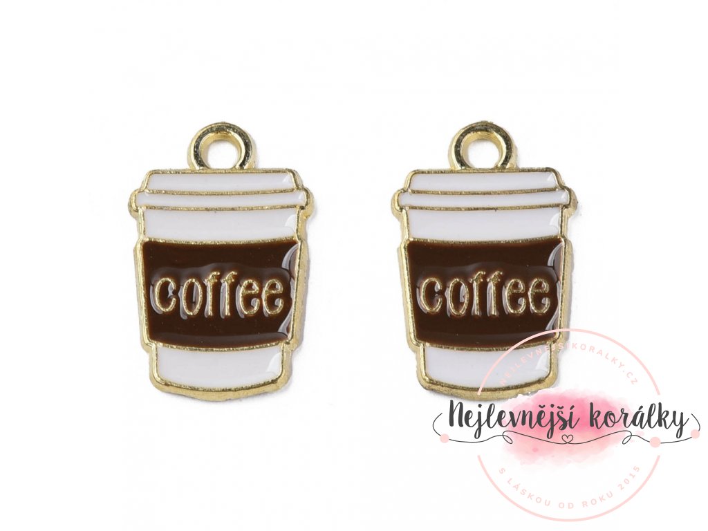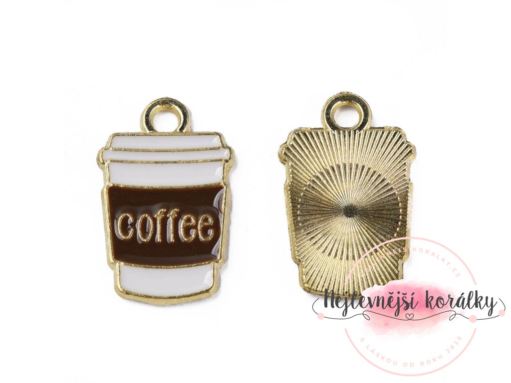 Kovový přívěsek - zlatý - kelímek s kávou - 18 x 11 x 1 mm - 1 ks