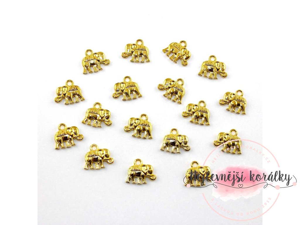 Kovový přívěsek - zlatý - slon - 12 x 14 x 2,5 mm - 1 ks